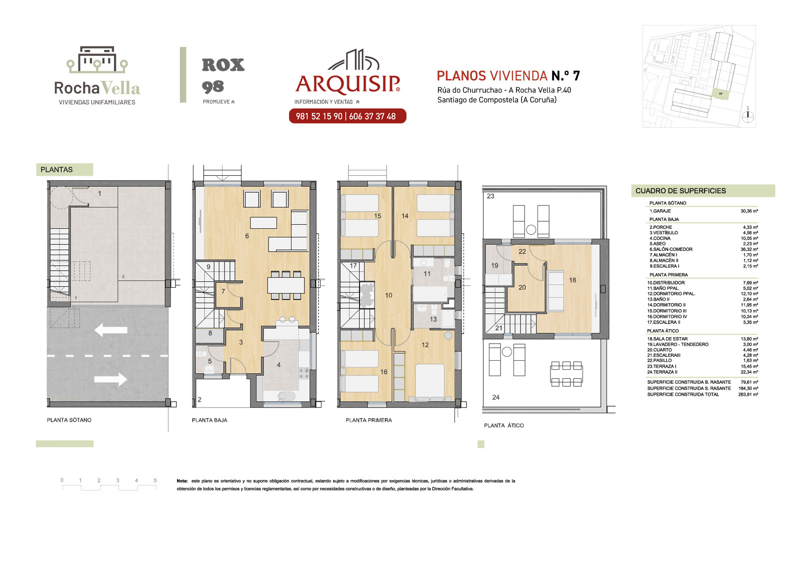 La promoción se sitúa en la Rúa Churruchao, en A Rocha Vella (Santiago de Compostela), en el tramo de la nacional 550 que une Santiago y Milladoiro. Se trata de una finca cerrada con muro de piedra y urbanizada con aparcamientos, parque infantil y anexa al Centro Socio Cultural de A Rocha por dónde discurre el camino de Santiago.