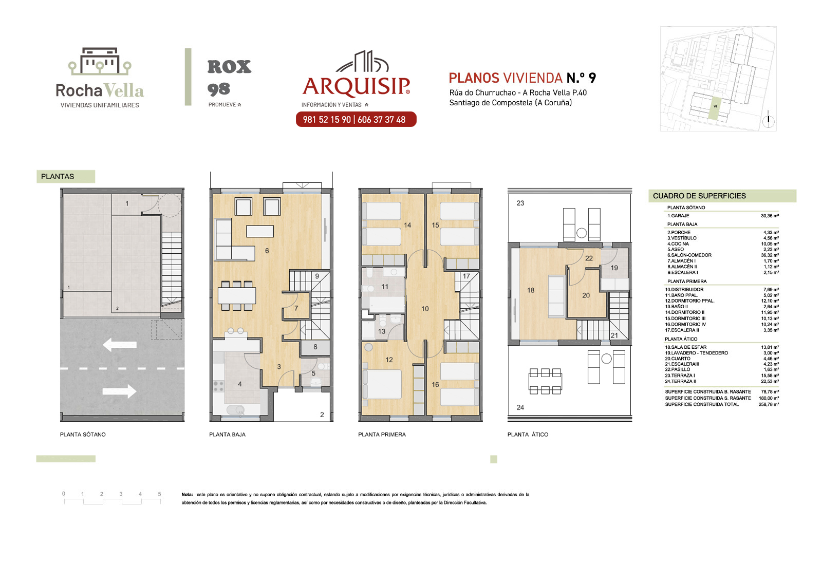Vivienda 9 con 258 m2 construidos y 64 m2 de zona ajardinada, con posibilidad de realizar cambios en la distribución y con hueco de obra para instalación de ascensor.